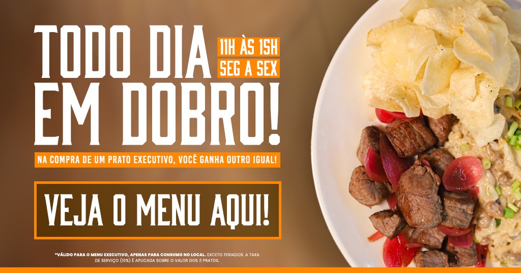 Na compra de um prato executivo, você ganha outro igual. Consulte os pratos do dia!
