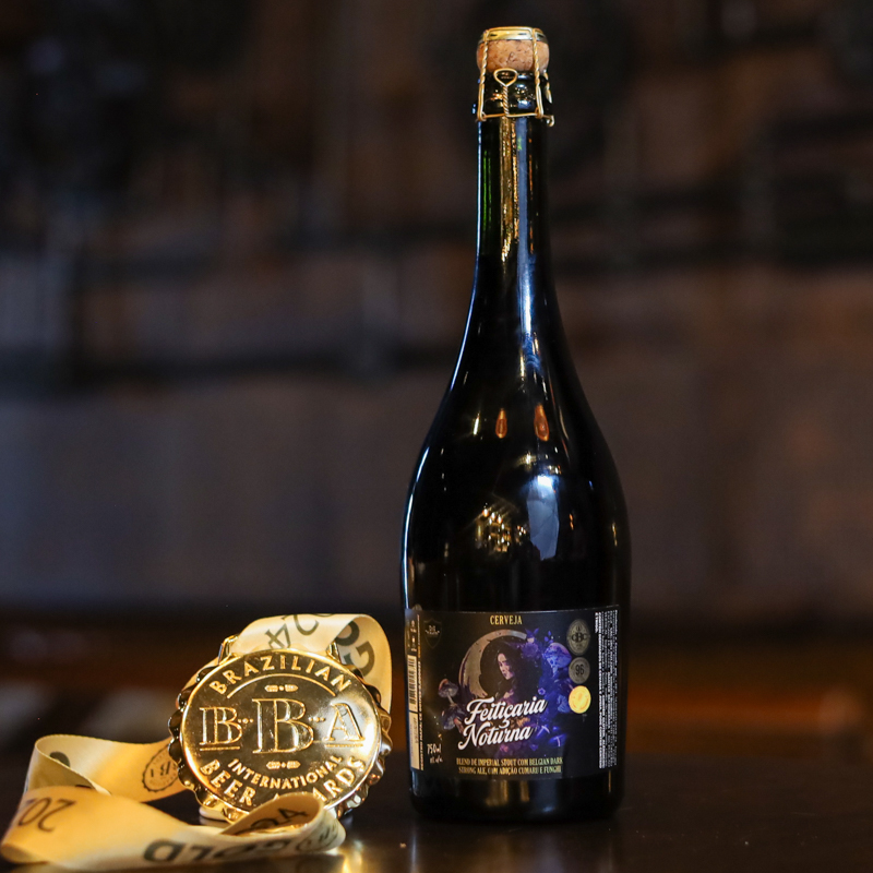 Características: Literalmente uma Feitiçaria em forma de cerveja. Um blend (mistura) de Russian Imperial Stout com uma Belgian Dark Strong ale, com adição Cumaru (Baunilha brasileira) e Funghi (Cogumelo).
