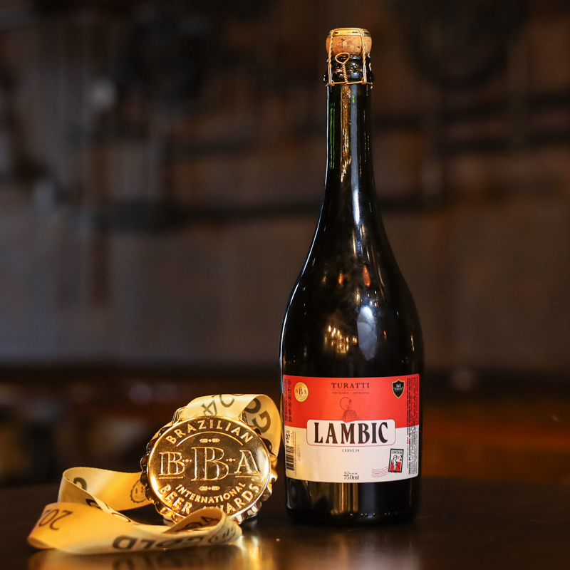 Características: Lambic da cervejaria Turatti é uma cerveja belga de trigo, selvagem e complexa, com alta acidez e aromas e sabores intensos. Premiada foi medalha de ouro no BBA Brazilian Beer Awards. Esse estilo de cerveja é envelhecido em barris de carvalho.