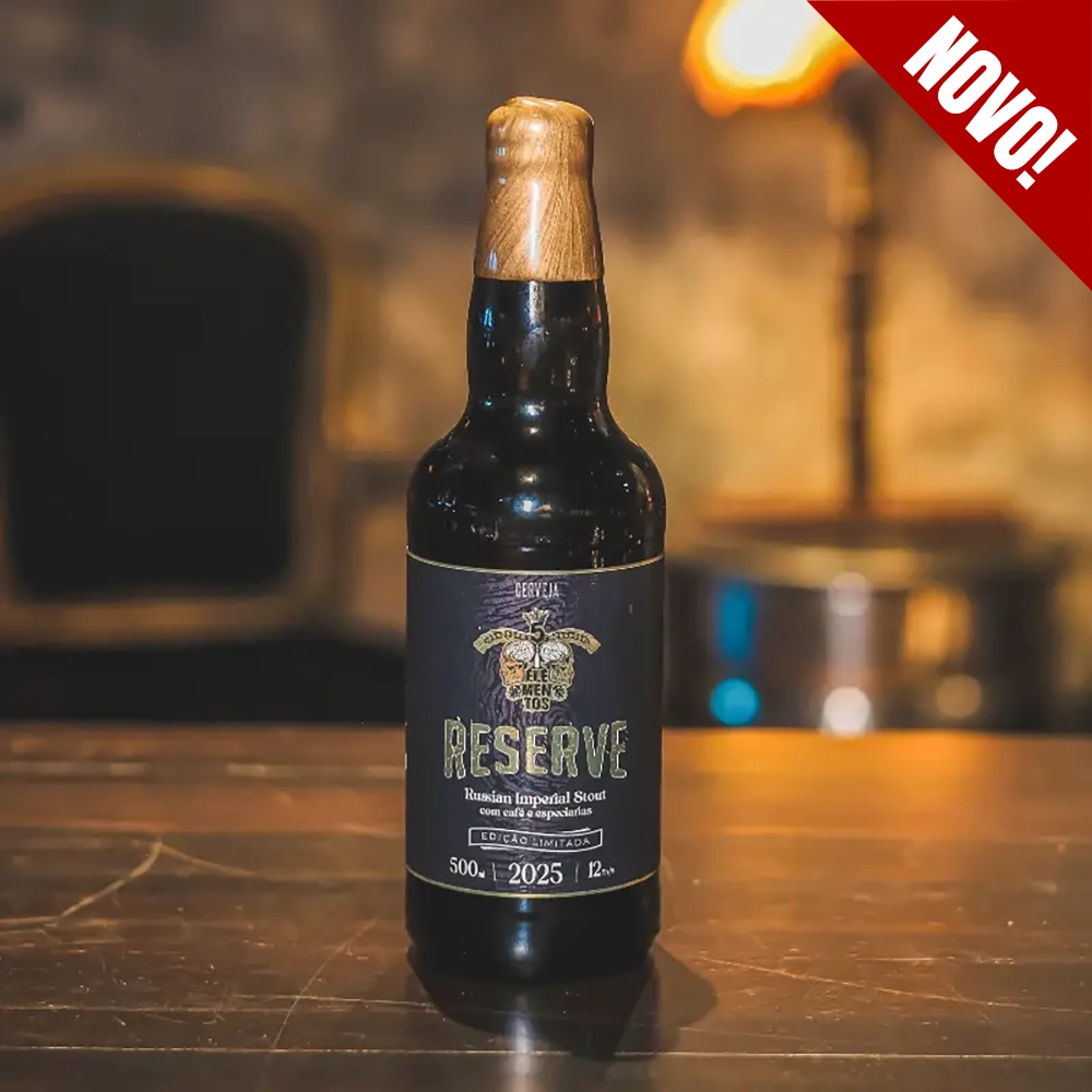 A Reserve 2024 é a primeira cerveja comemorativa de aniversário da 5 Elementos Cervejaria. Cerveja elaborada a partir de uma Imperial Stout robusta, enriquecida com lactose, café e especiarias, resultando em um perfil intenso e marcante. Um rótulo único e exclusivo.